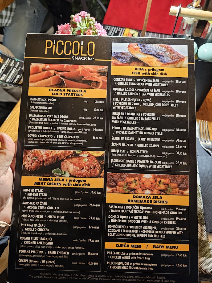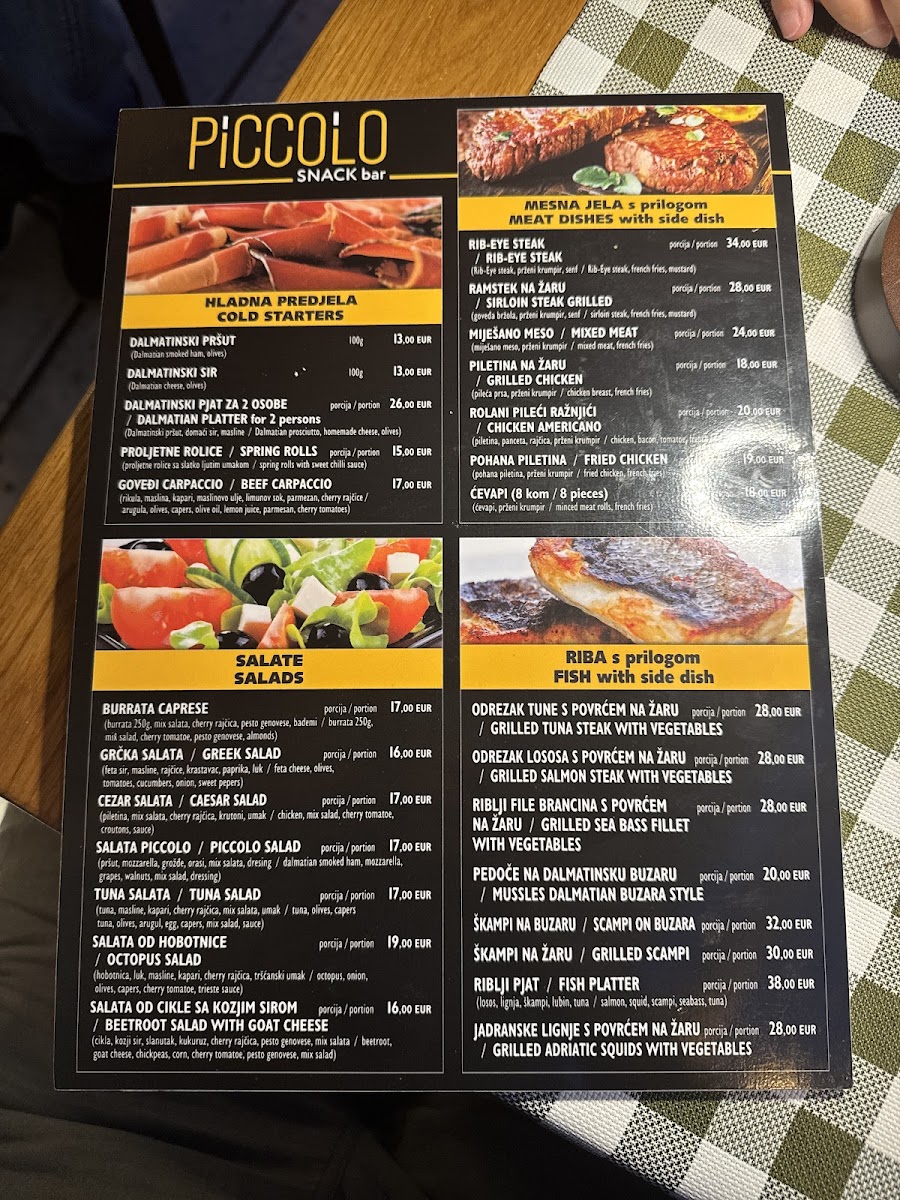 Nestled along the scenic promenade of Obala Hrvatskog narodnog preporoda in Split, Croatia, Piccolo Snack Bar promises a delightful culinary experience. The menu showcases an impressive variety of dishes, appealing to both locals and tourists alike. Diners have raved about the hearty breakfast options, which are not only filling but also affordably priced, making them a perfect start to your day.